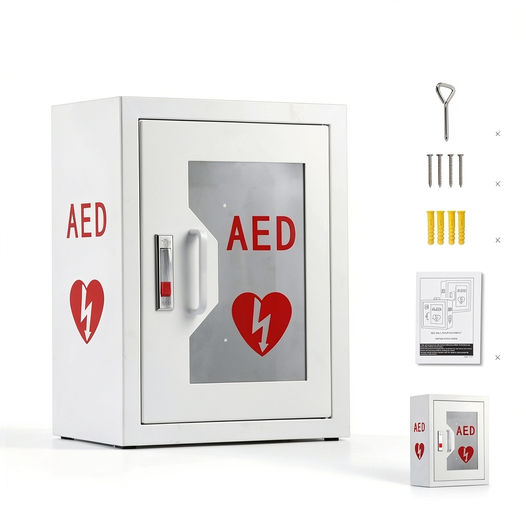 This AED cabinet is ideal for environments where quick emergency response is critical, such as home offices, schools, corporate buildings, and public spaces like gyms or community centers. It is designed for wall mounting to keep floors clear and AEDs within reach during cardiac emergencies. The dustproof feature makes it suitable for both indoor and outdoor use, ensuring reliability in high-traffic areas or locations prone to debris.