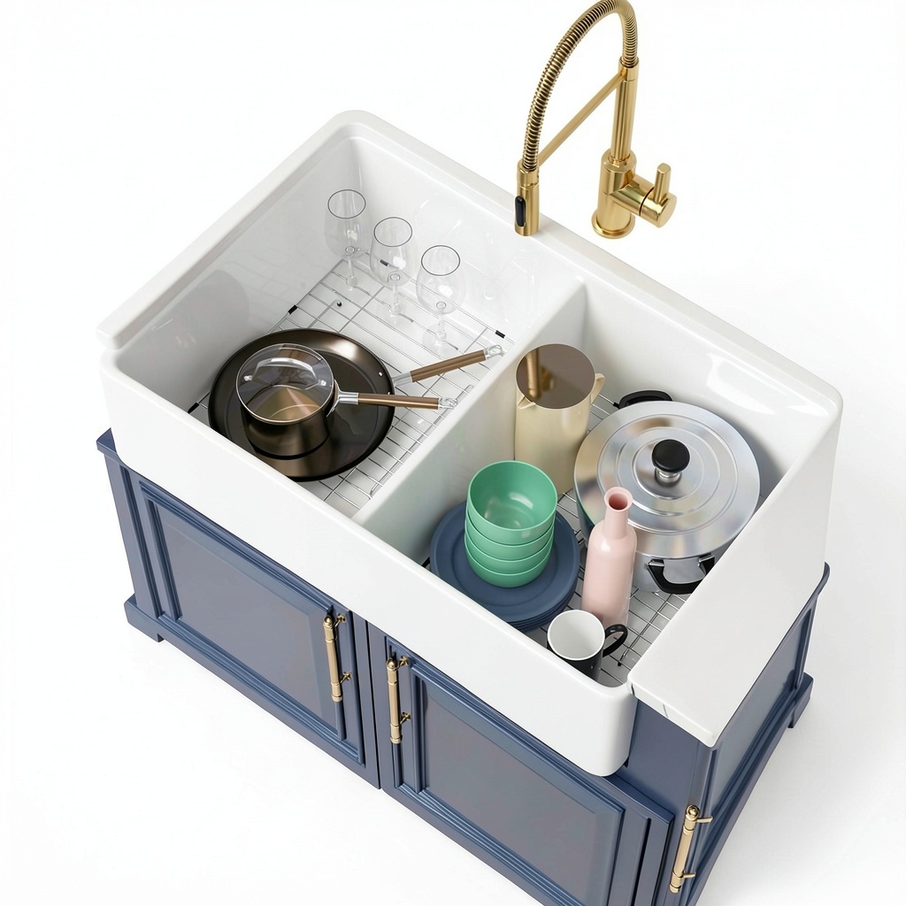 This sink is ideal for residential kitchens, especially in homes with a farmhouse or rustic design theme. It suits households that require efficient multitasking, such as washing dishes in one bowl while rinsing produce in the other. The deep bowls accommodate large pots and pans, making it perfect for cooking enthusiasts and families. Installation is straightforward in base cabinets at least 35 inches wide, and it works well with standard garbage disposal units.
