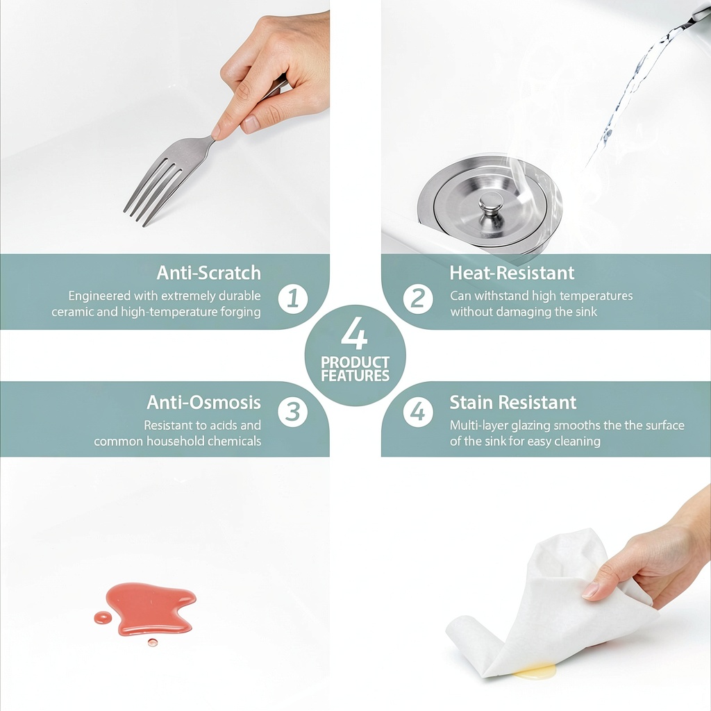 Kichae sinks stand out due to their genuine fireclay construction, which undergoes high-temperature firing for unmatched strength. The polished finish not only enhances aesthetics but also simplifies cleaning. Each sink is carefully packaged with anti-collision foam to prevent damage during shipping, ensuring it arrives in perfect condition. With a 4.5-star rating from over 50 reviews, this product is trusted for its reliability and elegant design.