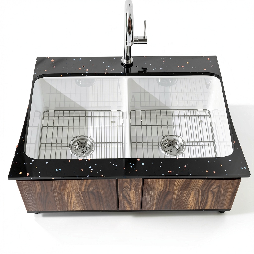 This sink is ideal for residential kitchens where durability and ease of maintenance are priorities. It suits households that frequently cook and clean large pots or pans, thanks to its spacious double bowls and stain-resistant surface. The dual mount flexibility allows it to integrate seamlessly with various countertop materials, from granite to laminate, catering to both new installations and kitchen renovations.