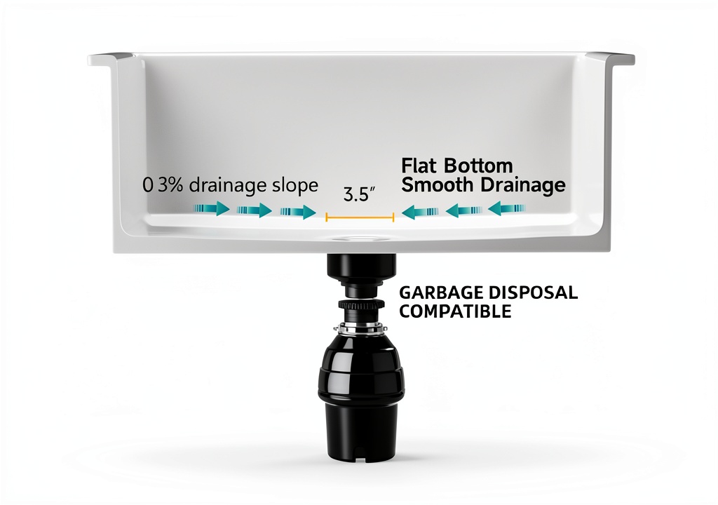 - Engineered drainage system with flat bottom and gentle slope for efficient water flow.
