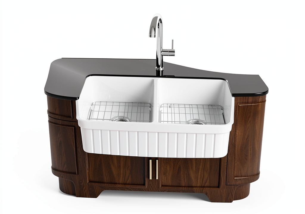 - Spacious double bowl design with 9-inch depth accommodates large items like pots and barbecues.