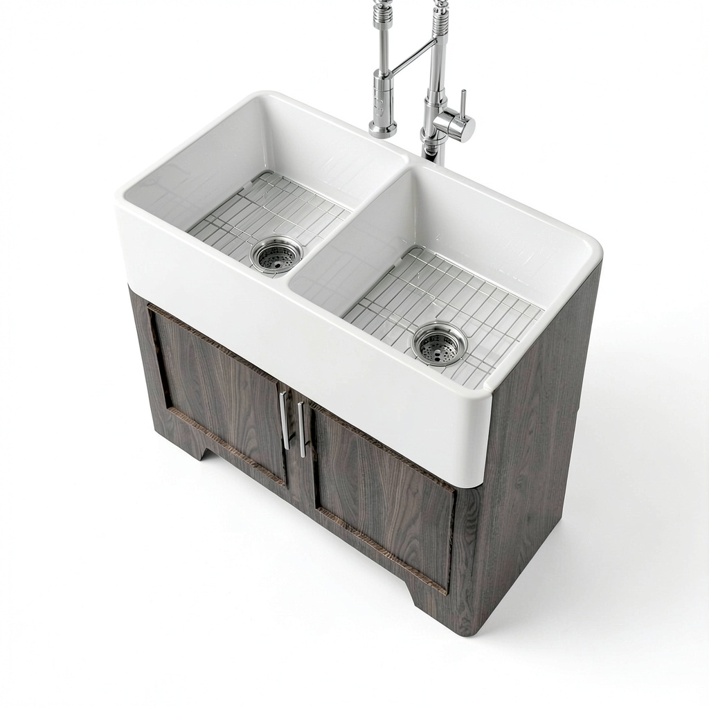 This farmhouse sink is ideal for residential kitchens, particularly in homes with farmhouse or rustic decor styles, where both functionality and aesthetics are priorities. It suits households that frequently handle large cookware, such as pots, pans, and baking sheets, thanks to its generous double bowl capacity. The undermount installation type makes it a seamless addition to countertops, appealing to DIY enthusiasts and professional installers alike for its ease of integration into standard cabinetry.